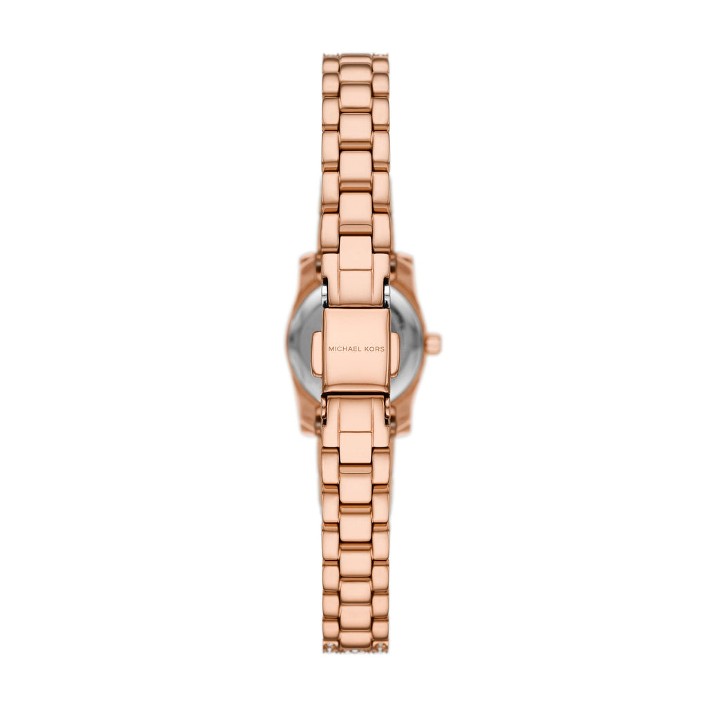 Michael Kors' 19mm Lexington watch features a rose gold sunray dial, three-hand movement and rose gold-tone stainless steel all over pavé bracelet.