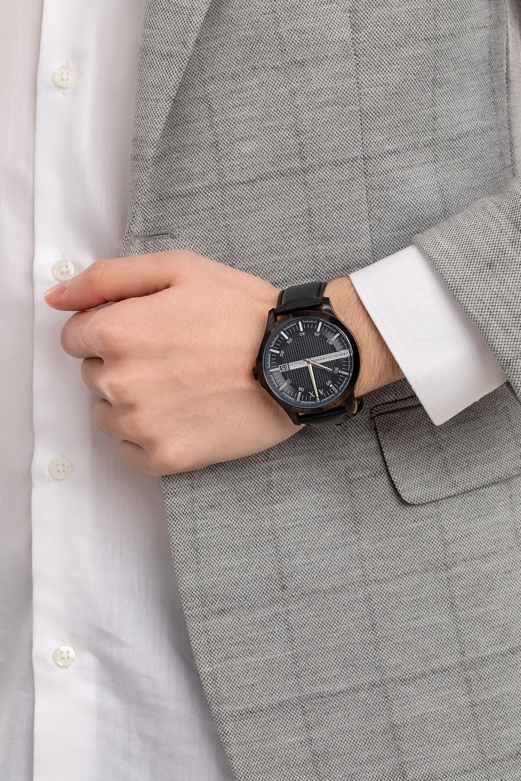 | Second Markers: | Minute Markers around the outer rim. The Armani Exchange logo appears at the 12 o'clock position |