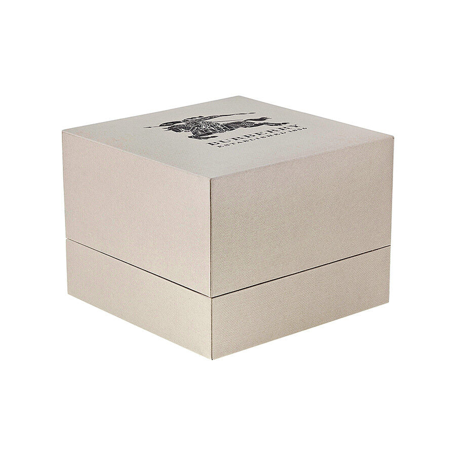 Stainless steel case with a black leather strap. Fixed stainless steel bezel. Beige dial with silver-tone hands and index hour markers. Arabic numeral appears at the 12 o'clock position. minute markers around the outer rim. Dial Type: Analog. Luminescent hands and markers. Date display above the 3 o'clock position. Seconds sub-dial above the 6 o'clock position. Quartz movement. Scratch resistant mineral crystal. Pull / push crown. Solid case back. Case diameter: 40 mm. Round case shape. Band width: 18 mm. Tang clasp. Water resistant at 50 meters / 165 feet. Functions: date, hour, minute, second. Casual watch style. Burberry Classic Round Beige Dial Black Leather Men's Watch BU10000.