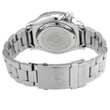 Silver-tone stainless steel case and bracelet. Black dial with luminous silver-tone hands and dots-index hour markers. Minute markers around the outer rim. Dial Type: Analog. Luminescent hands and markers. Day of the week and date display at the 3 o'clock position. Automatic movement. Scratch resistant mineral crystal. Screw down crown. Solid case back. Round case shape, case size: 42 mm. Deployment with push button release clasp. Water resistant at 200 meters / 660 feet. Functions: date, day, hour, minute, second. Promaster Sea Series. Dive watch style. Watch label: Japan Movt. Citizen Promaster Sea Automatic Black Dial Men's Watch NY0040-50E.