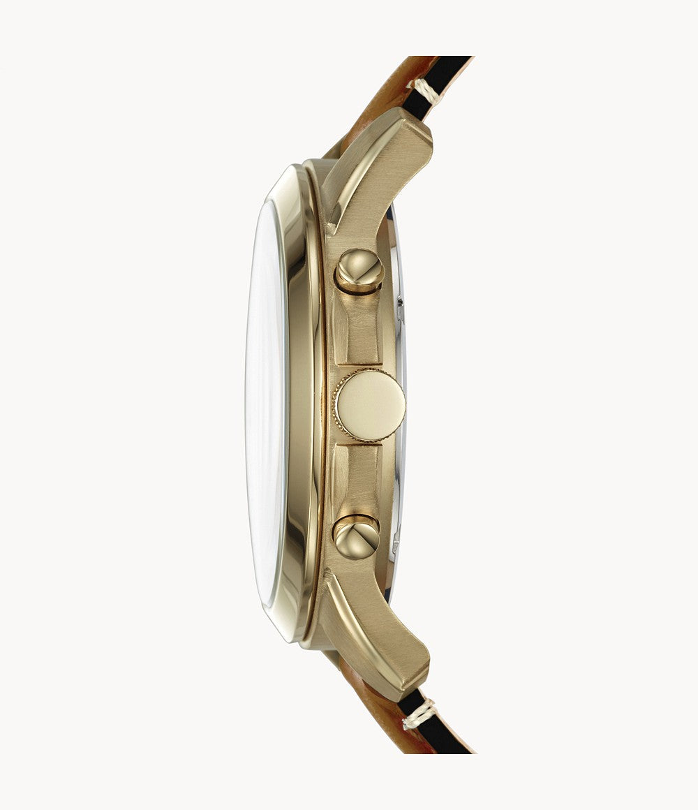 | Watch Features: | Chronograph, Stainless Steel, Leather, Gold, Analog |