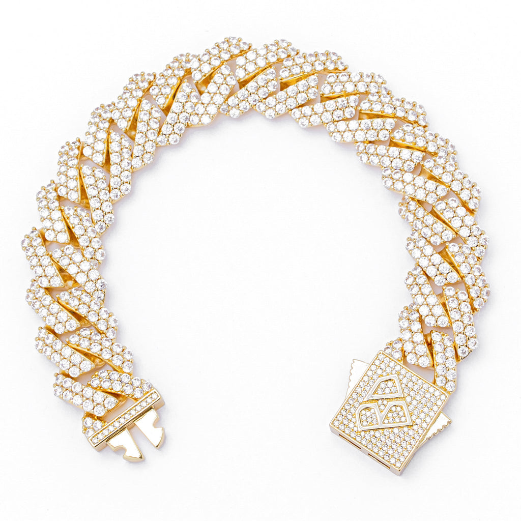 Elevate your wristwear with the Big Daddy Bracelet, a refined and versatile jewellery piece that emanates modern luxury. This bracelet boasts a sleek design embellished with dazzling 5A Zirconia diamonds strategically placed to capture light from all perspectives. Embraced by esteemed figures in the Hip-Hop scene, this exquisite accessory makes a confident statement, infusing a touch of urban chic into any attire. The prong-lifted stones and robust steel links highlight meticulous craftsmanship, ensuring optimal brilliance, enduring durability, and comfortable wear. Featuring upgraded safety clasps for both everyday elegance and special occasions, the Big Daddy Bracelet stands as the epitome of contemporary opulence, destined to be a timeless addition to your curated jewellery collection.