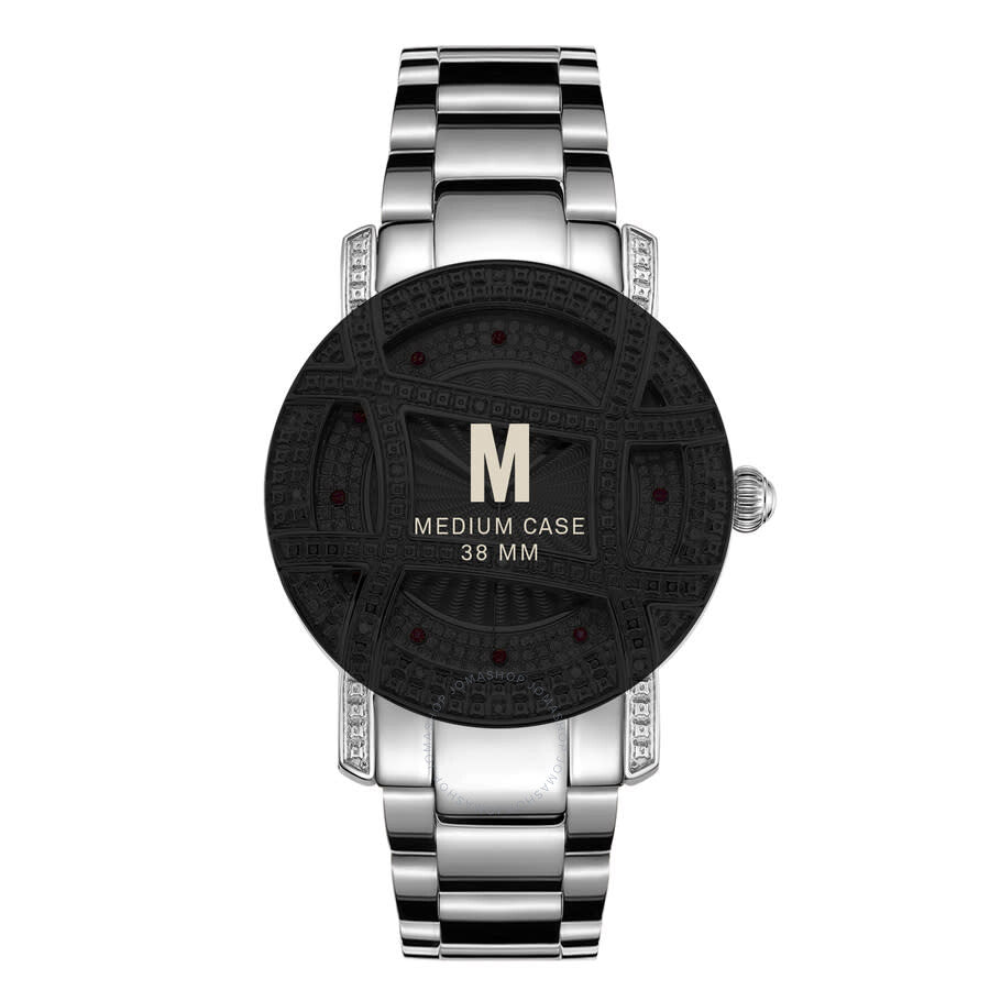 The dial features a fan texture pattern with siam topaz Swarovski stones marking each hour, and a unique screwed down caseback completes this design. Keeping true to its form, a diamond crystal cage makes this timepiece distinctly bold and unique to the Olympia collection with 20 round cut diamond with 0.20ctw. Stainless steel case and bracelet. Fixed stainless steel bezel. Silver-tone dial with silver-tone sword-shaped style hands and swarovski hour markers. Dial Type: Analog. Japanese Quartz quartz movement. Scratch resistant mineral crystal. Pull / push crown. Solid case back. Round case shape. Case size: 38 mm. Case thickness: 7 mm. Band width: 20 mm. Band length: 7.5 inches. Deployment clasp with a push button release. Water resistant at 50 meters / 165 feet. Functions: hour, minute, second. Olympia Series. Luxury watch style. Watch label: Japan Movt. JBW Olympia Quartz Silver Dial Ladies Watch JB-6214-10C.