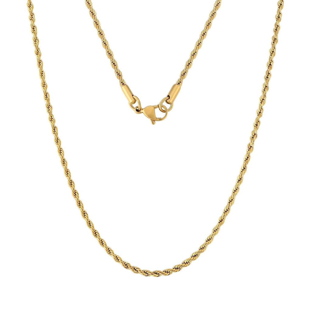 The Big Daddy 2.5mm Stainless Steel Rope Chain is coated with 14K gold, giving it a glossy and golden appearance. It comes with safety clasps and has fine craftsmanship, making it a stylish hip-hop jewellery item. It can be paired with various pendants or worn in different lengths as a set.
