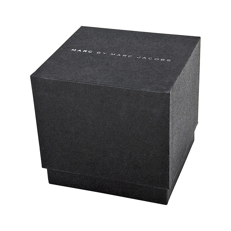 Gold-tone stainless steel case with a gold-tone stainless steel bracelet. Fixed gold-tone bezel. Gold dial with gold-tone hands and swarovski crystal hour markers. Dial Type: Analog. Date display between 4 and 5 o'clock position. Chronograph - three sub-dials displaying: 60 second, 60 minute and 24 hour. Quartz movement. Scratch resistant mineral crystal. Pull / push crown. Solid case back. Case size: 40 mm. Case thickness: 12 mm. Round case shape. Band width: 19 mm. Band length: 8.75 inches. Deployment with push button release clasp. Water resistant at 50 meters / 165 feet. Functions: date, hour, minute, second. Dress watch style. Marc by Marc Jacobs Blade Chronograph Gold Dial Gold-Tone Stainless Steel Ladies Watch MBM3101.