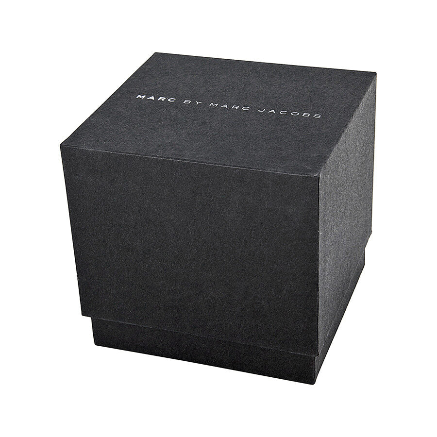 Stainless steel case with a stainless steel bracelet. Fixed stainless steel bezel. Silver dial with silver-tone hands and BY MARC JACOBS hour markers. Dial Type: Analog. Quartz movement. Scratch resistant mineral crystal. Pull / push crown. Solid case back. Case diameter: 20 mm. Case thickness: 8 mm. Round case shape. Band width: 10 mm. Band length: 7.5 inches. Fold over clasp with push button release. Water resistant at 50 meters / 165 feet. Functions: hour, minute, second. Casual watch style. Marc Jacobs Henry Dinky Silver Dial Stainless Steel Ladies Watch MBM3198.