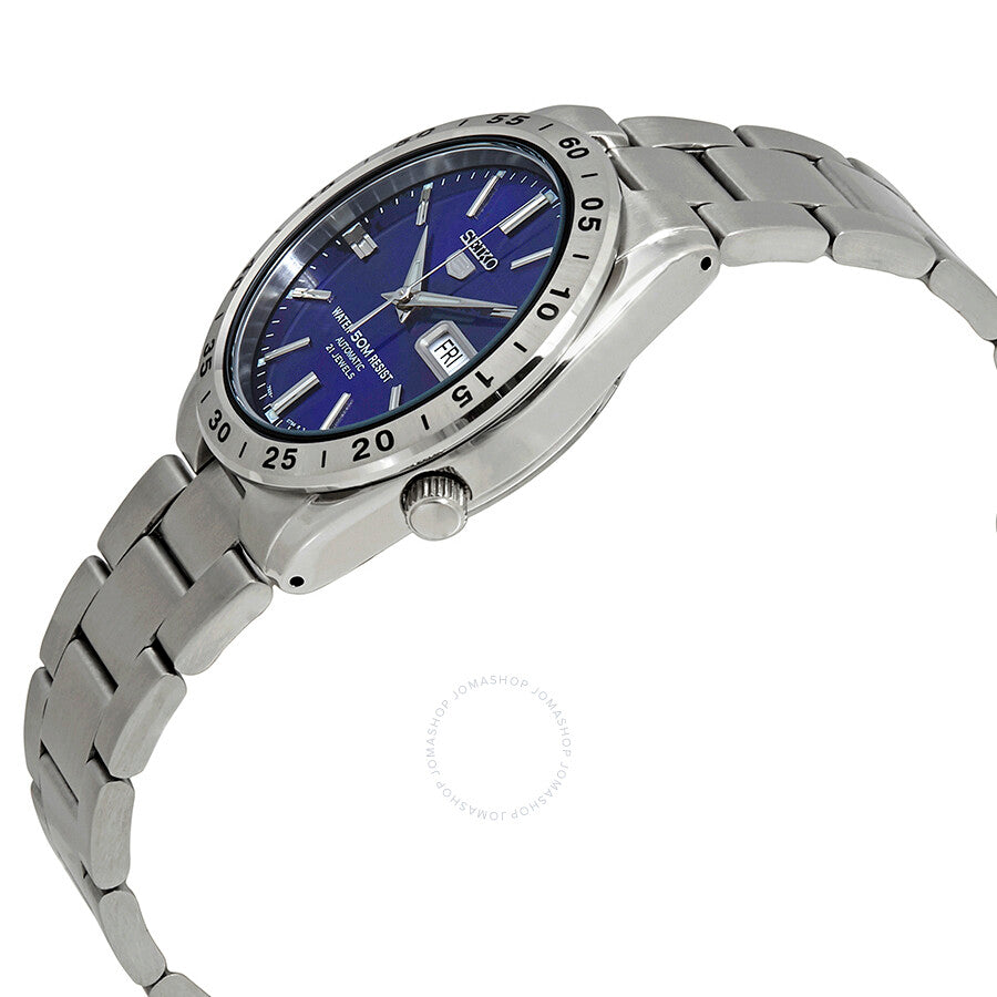 Stainless steel case with a stainless steel bracelet. Fixed stainless steel bezel. Blue dial with luminous silver-tone hands and index hour markers. Minute markers around the outer rim. Dial Type: Analog. Luminescent hands and markers. Day of the week and date display at the 3 o'clock position. Seiko caliber 7S26 automatic movement, based upon Seiko 7002, containing 21 Jewels, bitting at 21600 vph, and has a power reserve of approximately 40 hours. Scratch resistant Hardlex crystal. Pull / push crown. Transparent case back. Round case shape. Case size: 36 mm. Case thickness: 12 mm. Band width: 20 mm. Fold over clasp with a push button release. Water resistant at 50 meters / 165 feet. Functions: date, day, hour, minute, second. Additional Info: suitable for snorkeling, as well as swimming, but not diving. Series 5 Series. Casual watch style. Watch label: Japan Movt. Seiko Series 5 Automatic Blue Dial Men's Watch SNKD99K1S.
