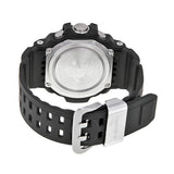 Black resin case with a black resin strap. Fixed black resin bezel. Digital dial displaying: hours, minutes, seconds, date and day of the week. Dial Type: Analog. Luminescent auto led. Quartz movement. Scratch resistant mineral crystal. Solid case back. Case size: 53 mm. Case thickness: 18 mm. Round case shape. Tang clasp. Water resistant at 200 meters / 660 feet. Functions: date, day, hour, minute, second, solar powered. Additional Info: igital compass, altimeter, barometer, thermometer, sunrise and sunset date, time stamp, mb6 atomic timekeeping, suitable for recreational scuba diving. Casual watch style. Item Variations: GW9400 1, GW9400.1, GW94001. Casio G-Shock Rangeman Multi-Band 6 Atomic Timekeeping Digital Dial Men's Watch GW9400-1.