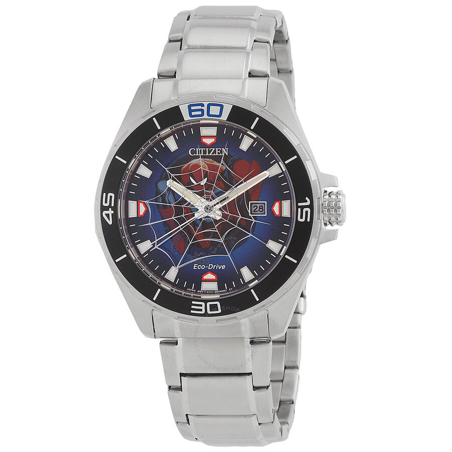 spider-man eco-drive blue dial men's watch bm7610-52w