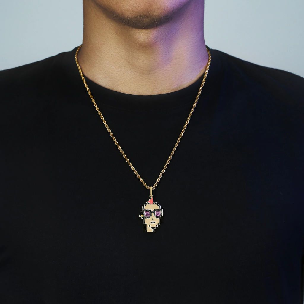 Dive into the metaverse and grab your physical NFT from Big Daddy®. This limited edition piece is made with the finest craftsmanship and has the bling touch. Each pendant is a verified NFT, meaning that it is a one-of-a-kind digital asset that is verified on the blockchain. And now at Big Daddy, we made a physical representation of them. This can also be a great gift for anyone who loves technology, art or the digital world!