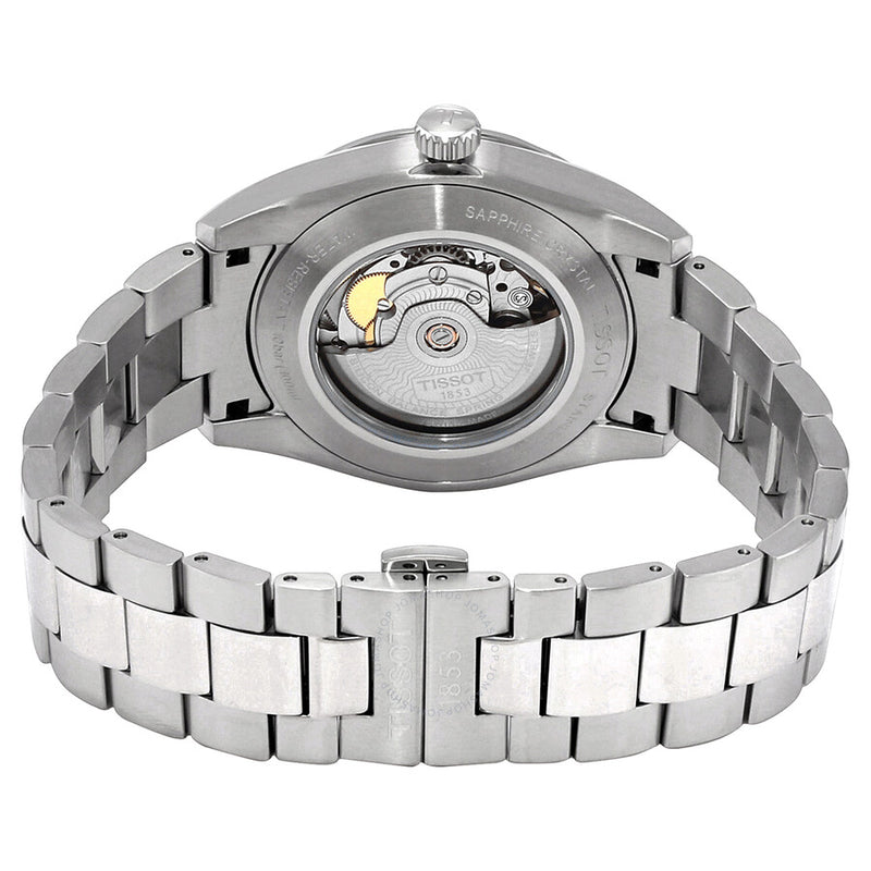 Stainless steel case with a stainless steel bracelet. Fixed stainless steel bezel. Anthracite dial with luminous silver-tone hands and index hour markers. Minute markers around the outer rim. Dial Type: Analog. Luminescent hands and markers. Date display at the 3 o'clock position. Powermatic 80.811 automatic movement, based upon ETA 2824-2, containing 25 Jewels, bitting at 21600 vph, and has a power reserve of approximately 80 hours. Scratch resistant sapphire crystal. Transparent case back. Round case shape. Case size: 40 mm. Case thickness: 11.5 mm. Band width: 21 mm. Fold over clasp with a safety release. Water resistant at 100 meters / 330 feet. Functions: date, hour, minute, second, chronometer. Powermatic 80 Silicium Series. Dress watch style. Watch label: Swiss Made. Tissot Powermatic 80 Silicium Automatic Chronometer Anthracite Dial Men's Watch T127.407.11.061.01.