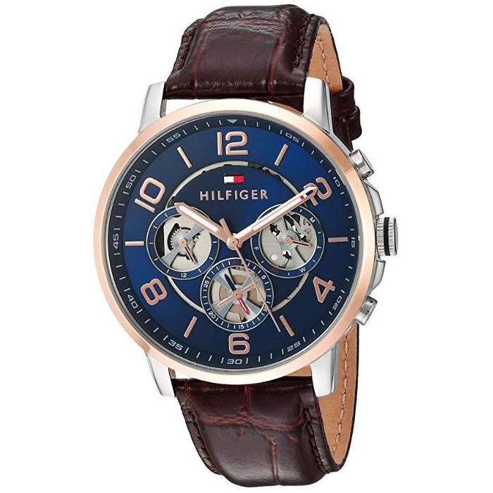 This Tommy Hilfiger Keagan Navy Dial Leather Strap Men's Watch 1791290 comes in transparent Sub-Eyes, Durable mineral crystal protects watch from scratches, Quartz Movement, Case Diameter: 44mm, Water resistant to 50m (165ft: in general, suitable for short periods of recreational swimming, but not diving or snorkeling